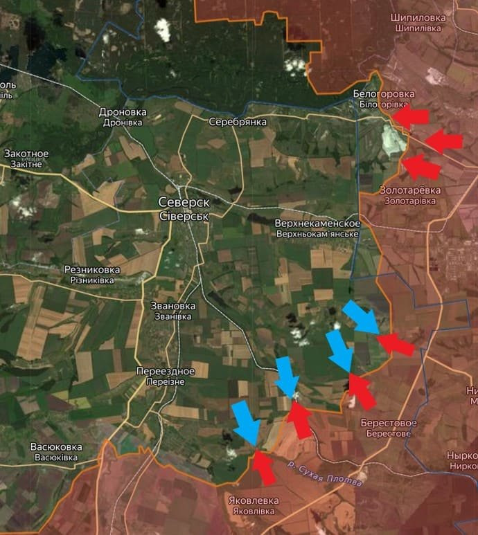На Артёмовском направлении российские войска, при поддержке артиллерии и авиации продолжают развивать наступление по направлению к Часов Яру. В Клещеевке - встречные бои. В Ивановском (Красном) российские войска продолжают зачистку западных окраин населённого пункта.