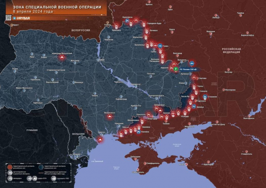 Новая карта боевых действий на Украине сегодня, 09.04.2024