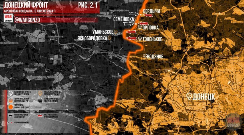Новая карта боевых действий под Авдеевкой по состоянию на 12.04.2024