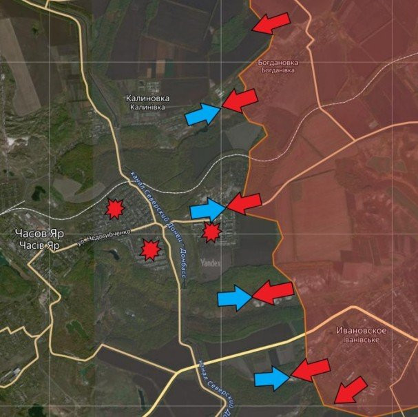 Вооруженные силы Российской Федерации (ВС РФ) отбили подстанцию и закрепились на восточной окраине Очеретино, где Вооруженные силы Украины (ВСУ) не имеют укрепленной линии обороны. Планируется освобождение Новобахмутовки и Новокалиново. Тяжелые бои продолжаются в Семеновке и Бердычах.