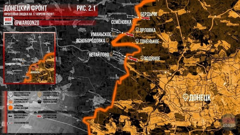 Уточненная карта боевых действий из зоны СВО на Украине от 18.04.2024