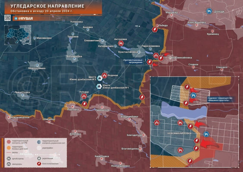 На Донецком фронте ВС РФ штурмуют западные окраины Новомихайловки, где остаются группы ВСУ. Плюс смогли продвинуться на рубеже Сладкое-Новомихайловка. ВКС России бьют по позициям ВСУ в соседней Парасковиевке. Наши военные хорошо продвинулись в посадках от Победы к южной окраине Георгиевки. Напомню, что в самой Георгиевке наши закрепились на севере. Продвижение наших поможет сильнее давить на группировку ВСУ в Красногоровке, где армия России продвигается в юго-восточной части, закрепившись в здании ж/д вокзала и его окрестностях.