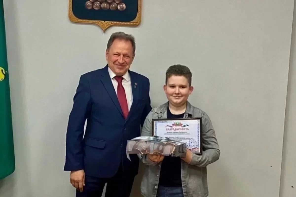 За проявленный героизм пятиклассника наградил глава Валуйского округа Алексей Дыбов. Глава муниципалитета вручил мальчику благодарность и часы.