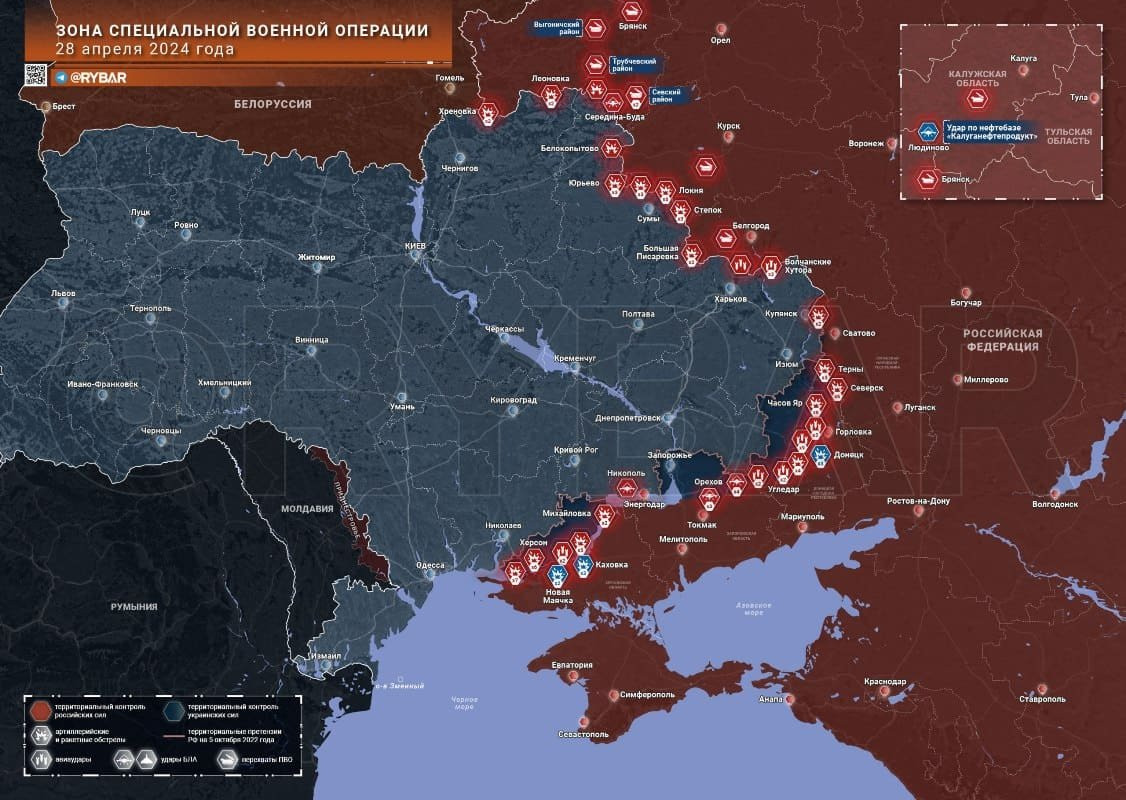 Карта боевых действий на Украине в зоне СВО сегодня, 29.04.2024