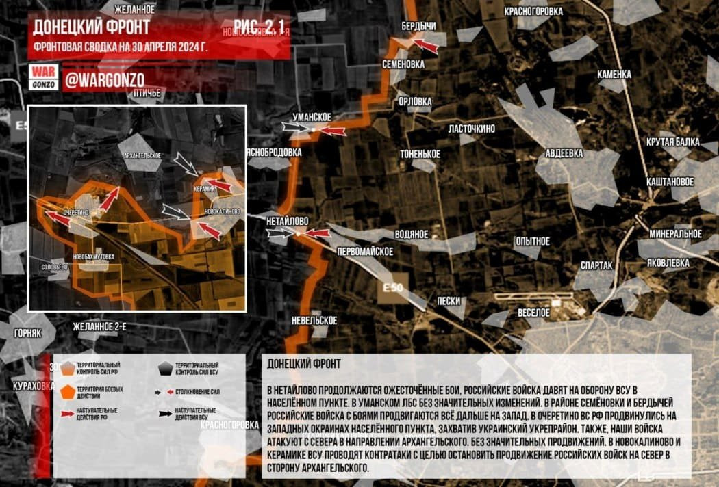 Ситуация в зоне СВО на сегодняшний день, 30.04.2024: обзор событий