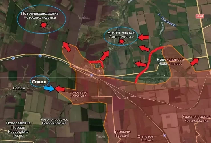 В ходе последних военных действий российские войска группировки "Центр" почти полностью взяли под контроль посёлок Архангельское и активно продвигаются к населённым пунктам Сокол, Новоалександровка и Новопокровское, что является частью наступательной операции за Авдеевкой.