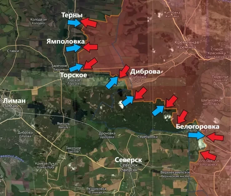 На Северском направлении подразделения ВС РФ пытаются завладеть позициями ВСУ в районе белогоровского террикона (отвала мелового карьера). Но сделать это не удается из-за того, что на терриконе оборудовано огромное количество укрытий и огневых точек. Не помогают даже артиллерийские и авиационные удары. Периодически идут бои и в самой Белогоровке - без успехов для какой-либо из сторон.
