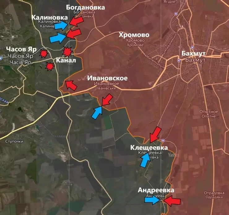 Издание отмечает, что продвижение ВС РФ в районе освобожденного Очеретино позволяет российским подразделениям выходить на западный фланг группировки противника в районе Торецка и Нью-Йорка.
