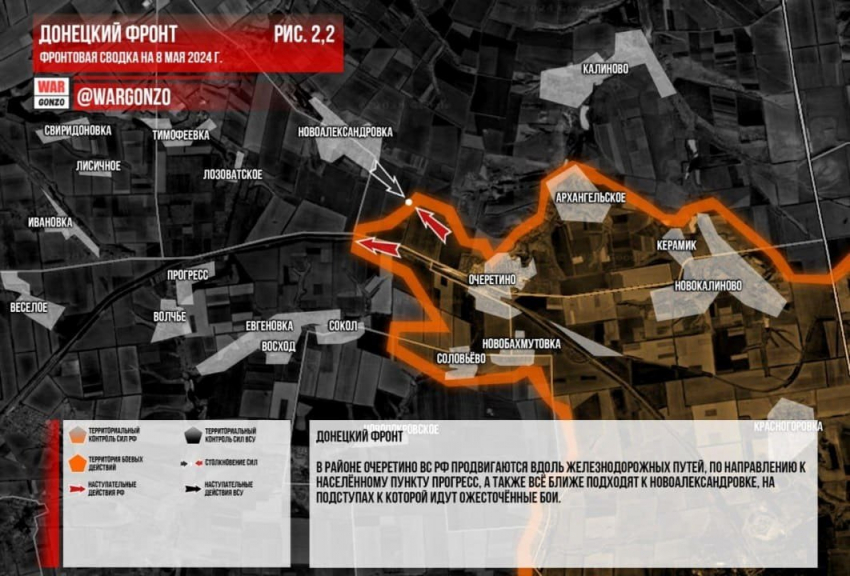Уточненная карта боевых действий из зоны СВО на Украине от 08.05.2024