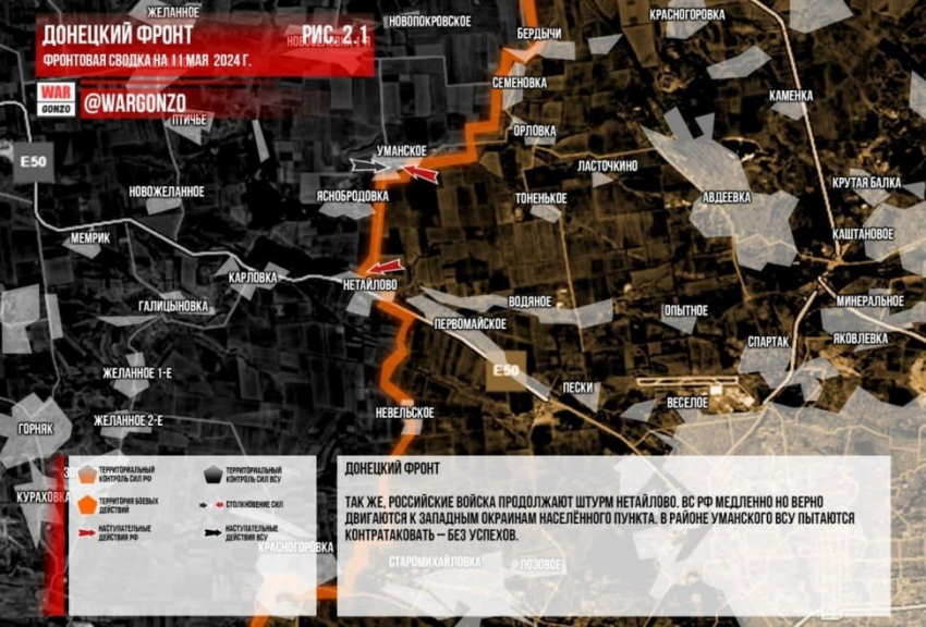 Новая карта боевых действий в зоне СВО на Украине по данным на 11.05.2024