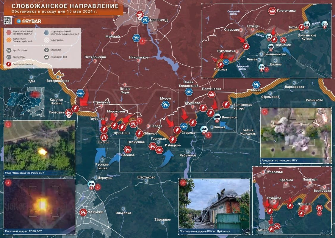 Последние новости СВО на 16 мая 2024. Карта боевых действий на Украине на сегодня, ВС РФ наступают на двух направлениях в Харьковской области