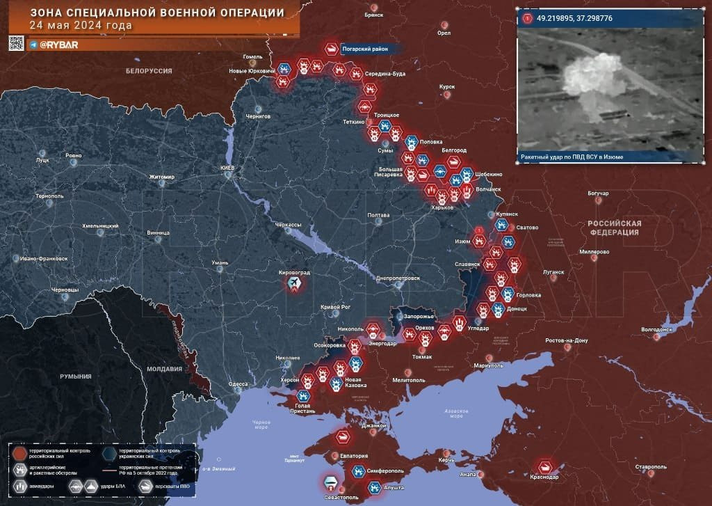 Последние новости СВО на 25 мая 2024. Карта боевых действий на Украине на сегодня, военная сводка