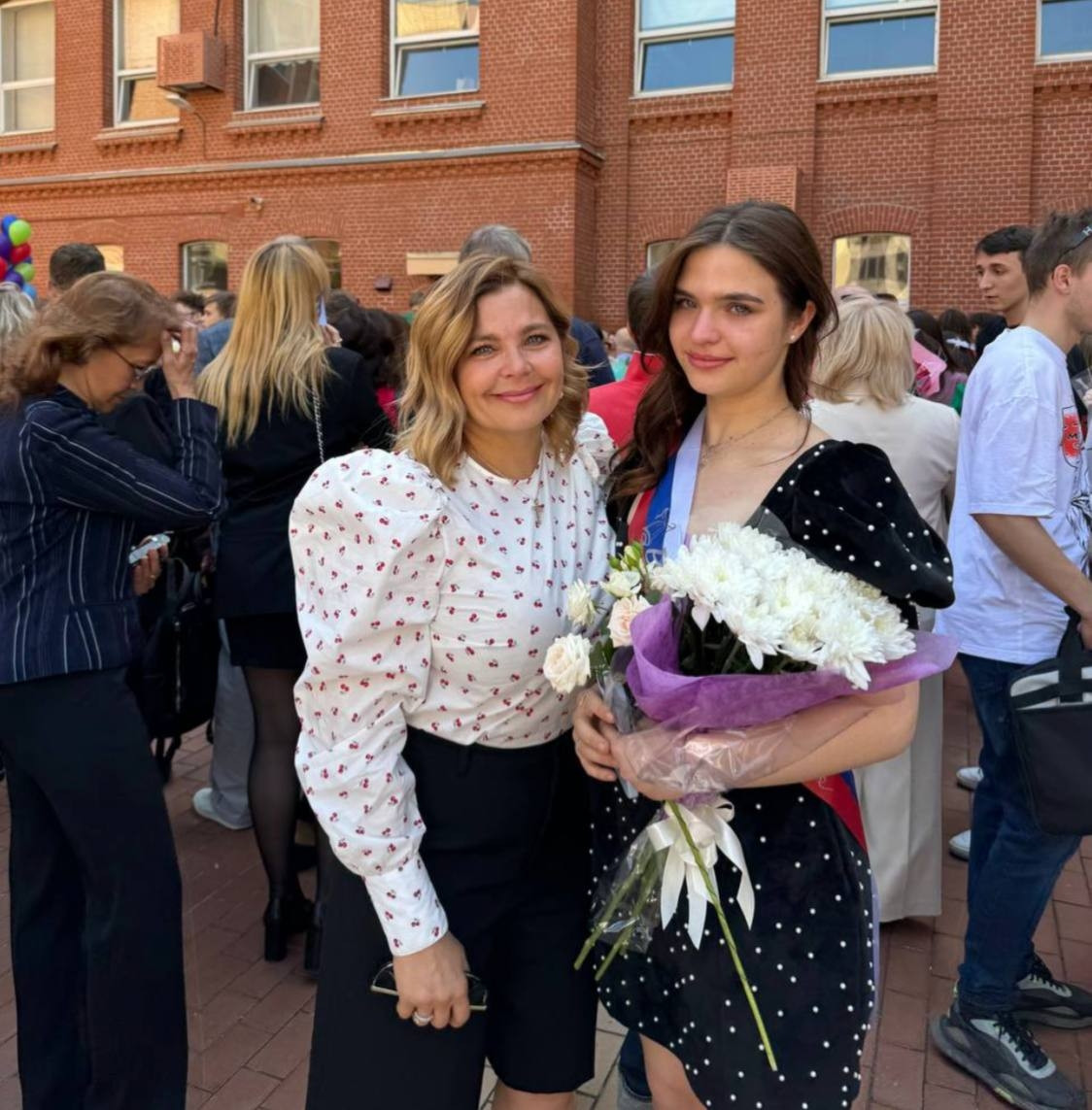 Мать с дочерью излучали очарование и элегантность, подчеркивая важный момент в жизни девушки. Поклонники не могли не выразить свои самые теплые поздравления и наилучшие пожелания для молодой выпускницы, которая только ступает на путь взрослой жизни.