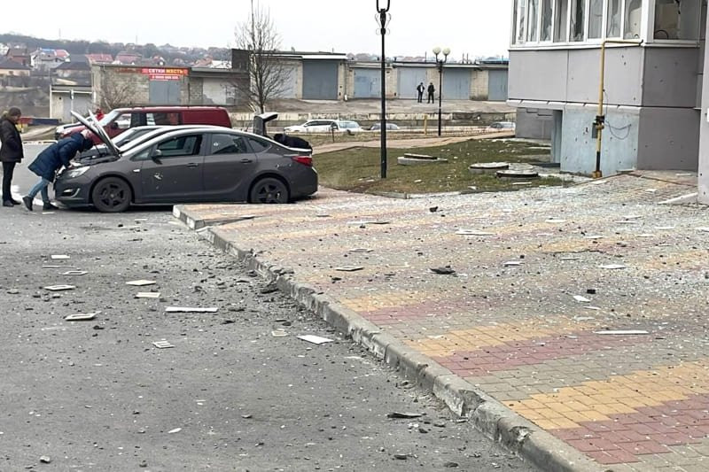 В четырех многоэтажках выбиты окна как минимум в 26 квартирах. Повреждены три частных дома. Также из-за прилетов загорелись хозпостройка в частном дворе и четыре машины, припаркованные у многоэтажки. Все возгорания оперативно потушены пожарными караулами.
