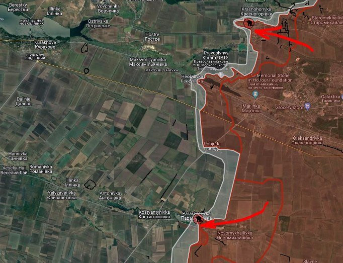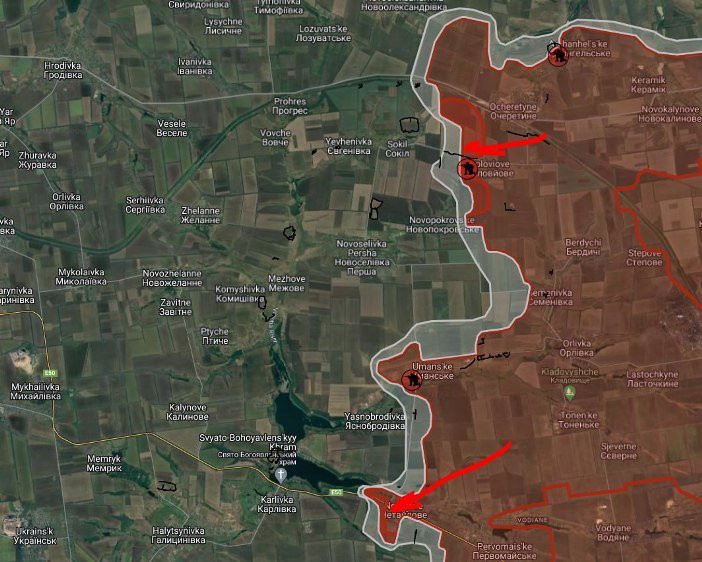 ВС РФ имеют успех восточнее Новоалександровки и западнее Соловьёво. Давят в направлении Сокола и Новопокровского.