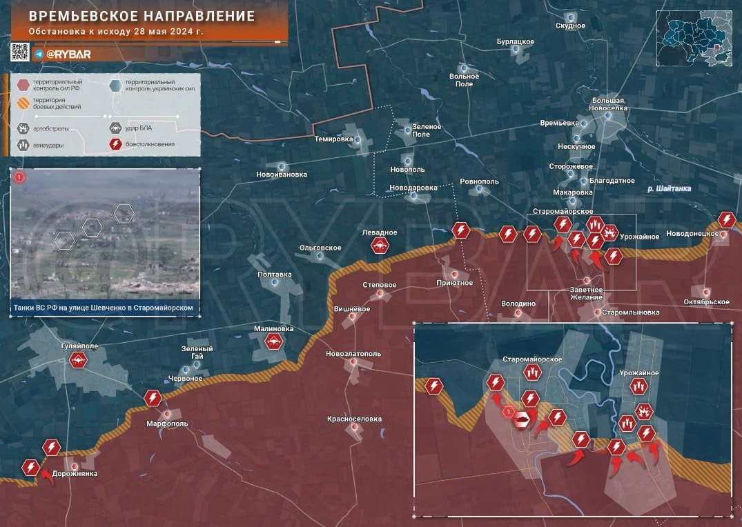 Новая карта боевых действий на Украине сегодня, 29 мая 2024 года