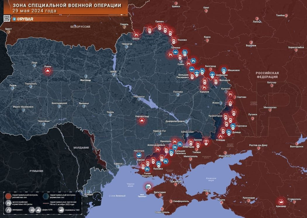 Последние новости СВО на 30 мая 2024. Карта боевых действий на Украине на сегодня, свежая военная сводка