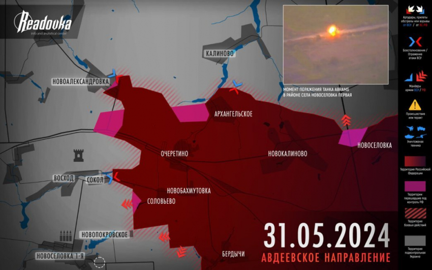 Ситуация под Авдеевкой на сегодня. Карта боевых действий от 1 июня 2024 года, ВС РФ продвигаются