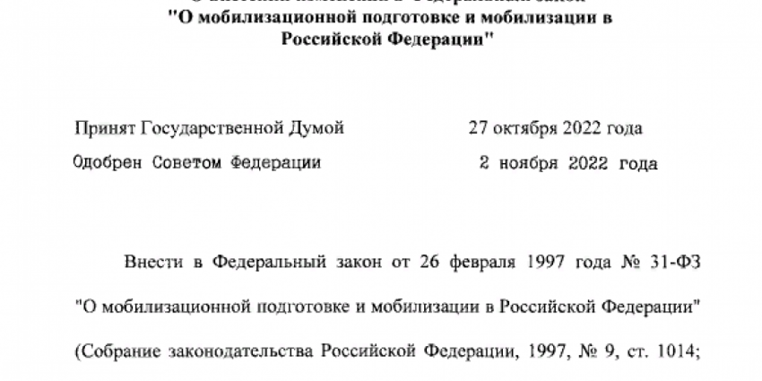 Путин подписал закон, согласно которому на военную службу в рамках мобилизации могут быть призваны граждане, имеющие неснятую или непогашенную судимость за некоторые тяжкие преступления.