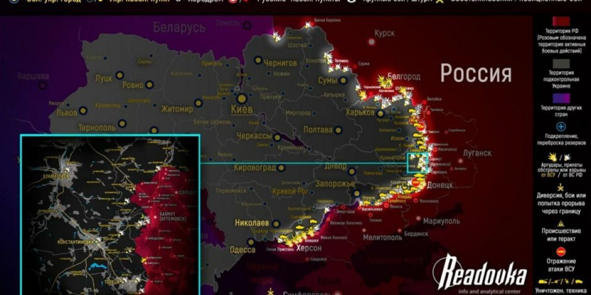 • Артемовск (Бахмут) сегодня 25 мая 2023: новая карта боевых действий на Украине 25.05.2023. Новая карта Украины