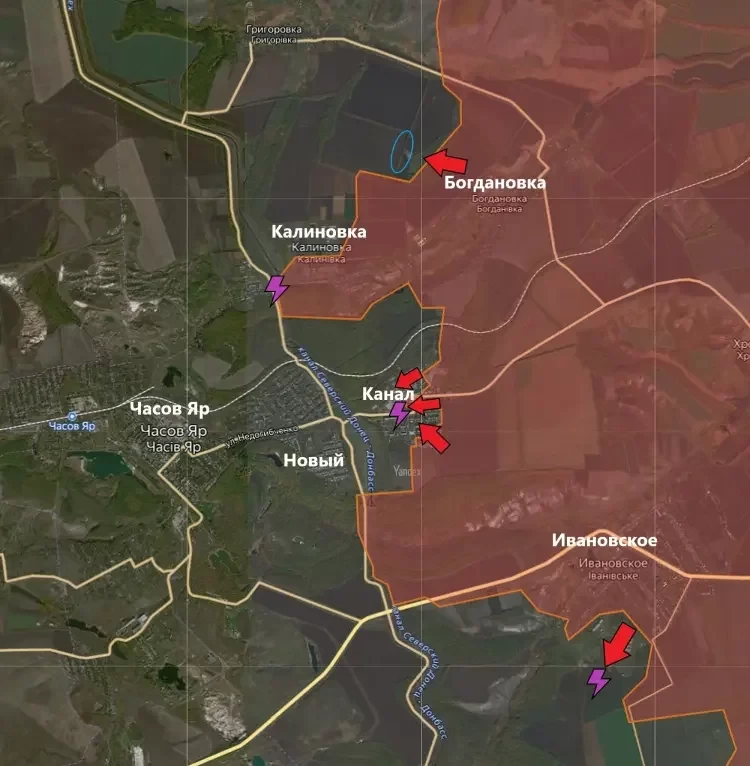 На Часовоярскоv направлении ВС РФ продвигаются в восточном пригороде Часов Яра по направлению к каналу Северский Донец-Донбасс, есть продвижения. Центральная часть микрорайона уже находится под контролем российских войск. Также, есть продвижения в районе Ивановского, где продолжаются бои за высоты, передает Telegram-канал Wargonzo.