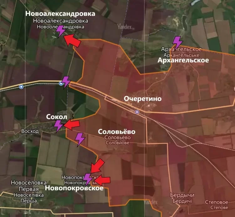 Армия России давит противника в районе Новопокровского. Наши бойцы наступают с северо-востока и востока.