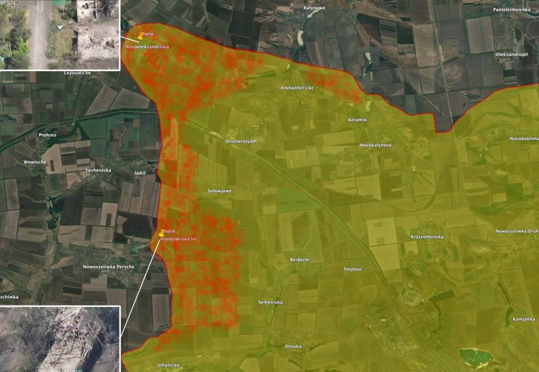 Постепенно идет продвижение от Новопокровского к Новоселовке Первой. Враг выложил кадры поражения нашей бронегруппы при помощи артиллерии и беспилотников, так что как минимум одна атака была сорвана.