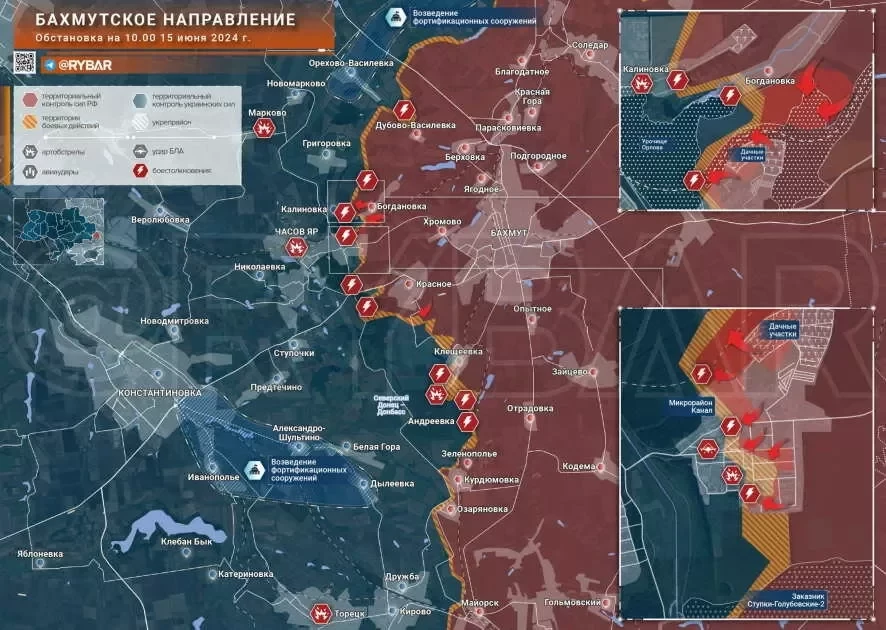 Карта боевых действий на Украине в зоне СВО на 16.06.2024
