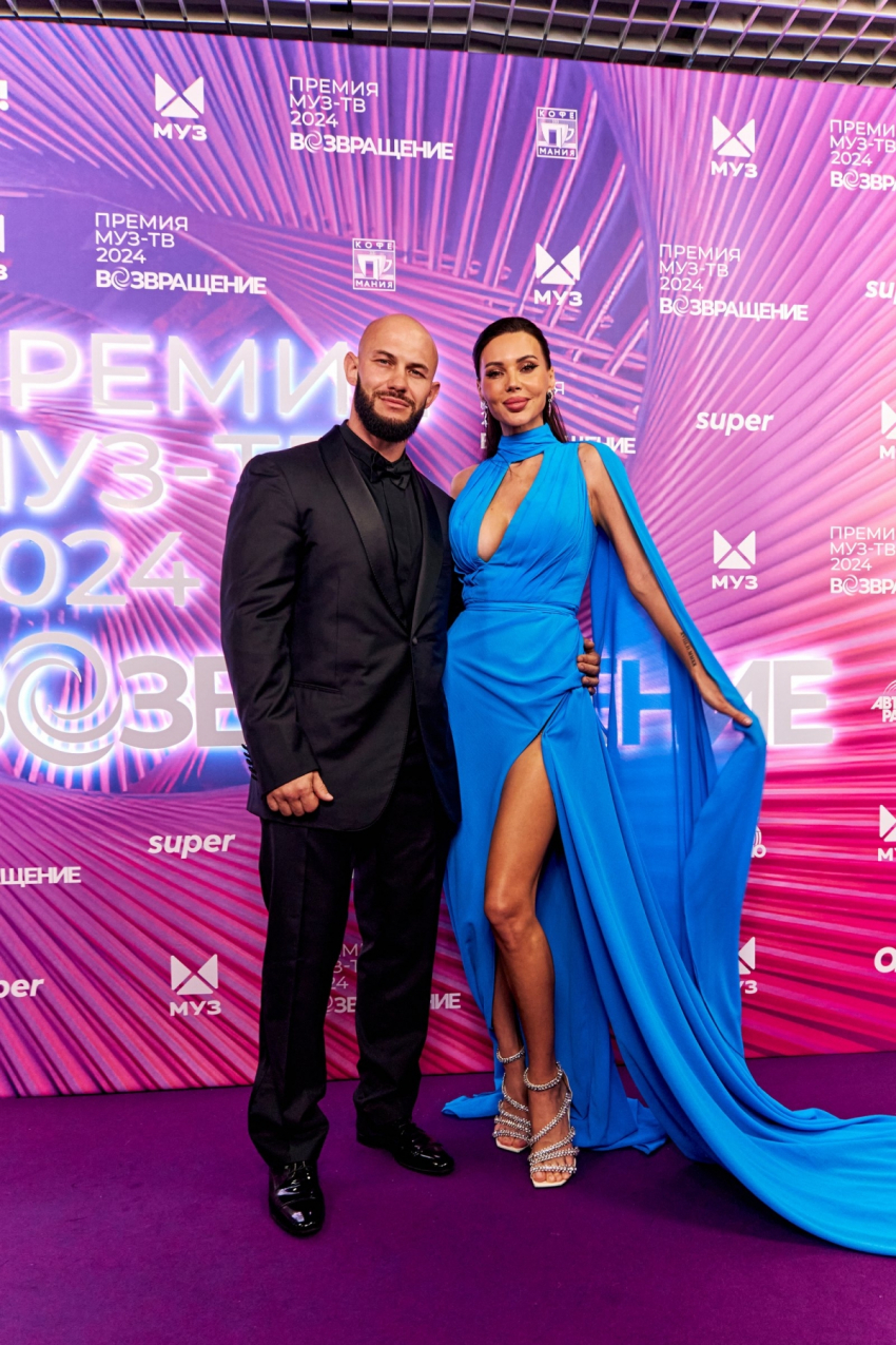Лена Катина вышла на красную дорожку со свей семьей, а Оксана Самойлова блистала в голубом платье со смелым декольте и разрезом.