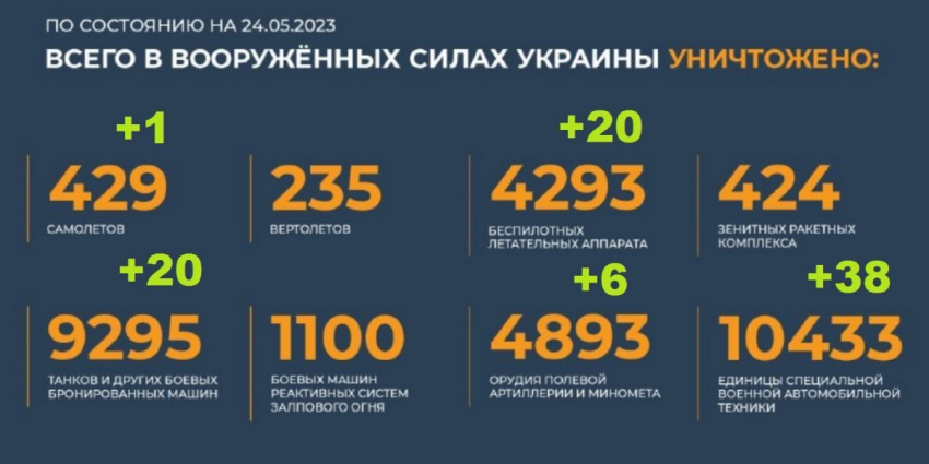 • Спецоперация России на Украине 24 мая 2023: Развитие событий, комментарии военкоров и заявления первых лиц, экономика и международная реакция
