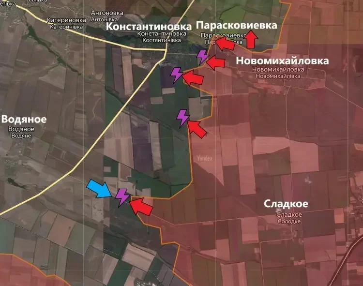 Военнослужащим российской армии удалось продвинуться на Угледарском направлении. В частности, противник был выбит из Парасковиевки, но сохраняет присутствие на окраинах. Западная часть села является серой зоной, так как занять её не удаётся из-за постоянных артиллерийских ударов ВСУ. Идут встречные бои вдоль дороги между Сладким и Водяным. Помимо этого, подразделения ВС РФ продолжают методично продвигаться к Константиновке, выдавливая врага с его позиций, пишет PulsePen.