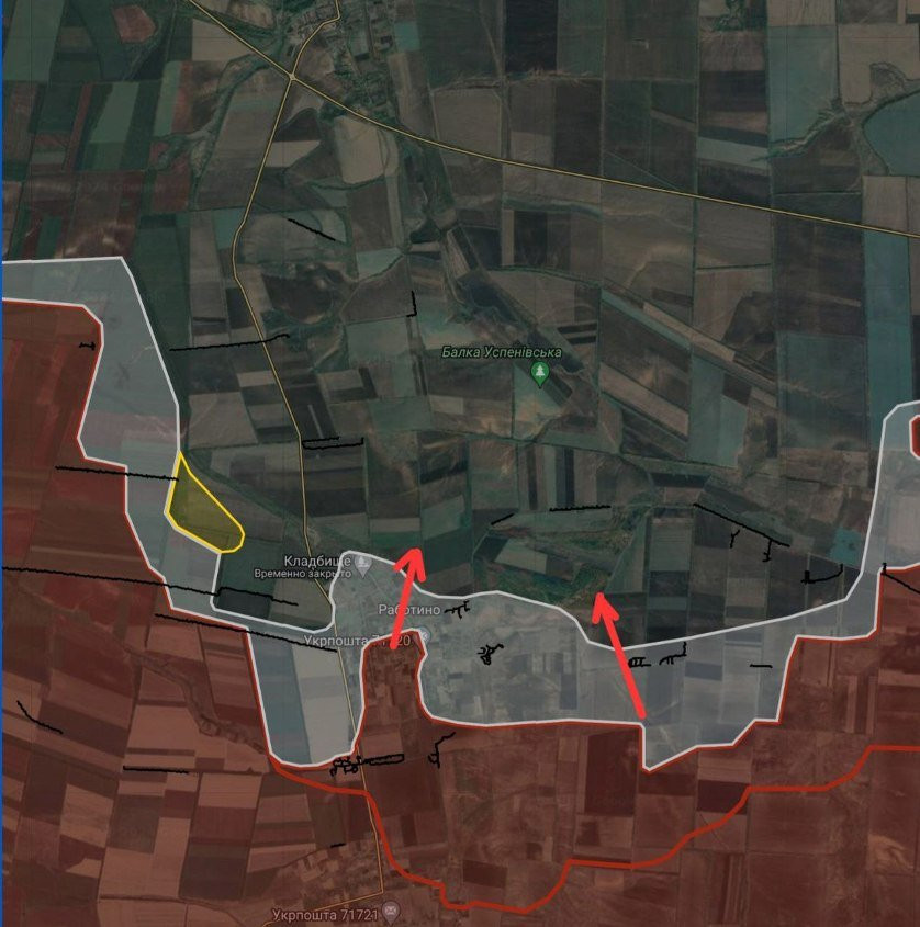 На Ореховском направлении ВС РФ продолжают давить в направлении балки Успеновская. ВСУ активно применяют дроны.