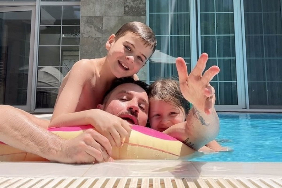 На видео можно увидеть сына Никиту, весело бегущего по пляжу в ярких шортах, а также дочь Анну, идущую следом в эффектном купальнике.