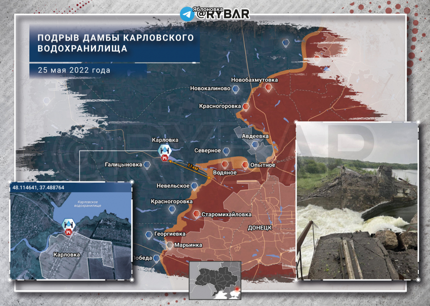 «Подрыв со стороны противника крайне маловероятен: учитывая зону контроля и проходящий через Карловку маршрут снабжения ВСУ, самоподрыв украинским формированиям невыгоден»,- добавил автор публикации.