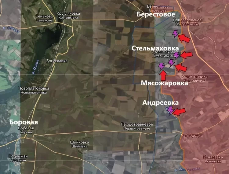 Также бои идут у Андреевки. Взятие этого населённого пункта в будущем несколько облегчит продвижение по трассе к Боровой.