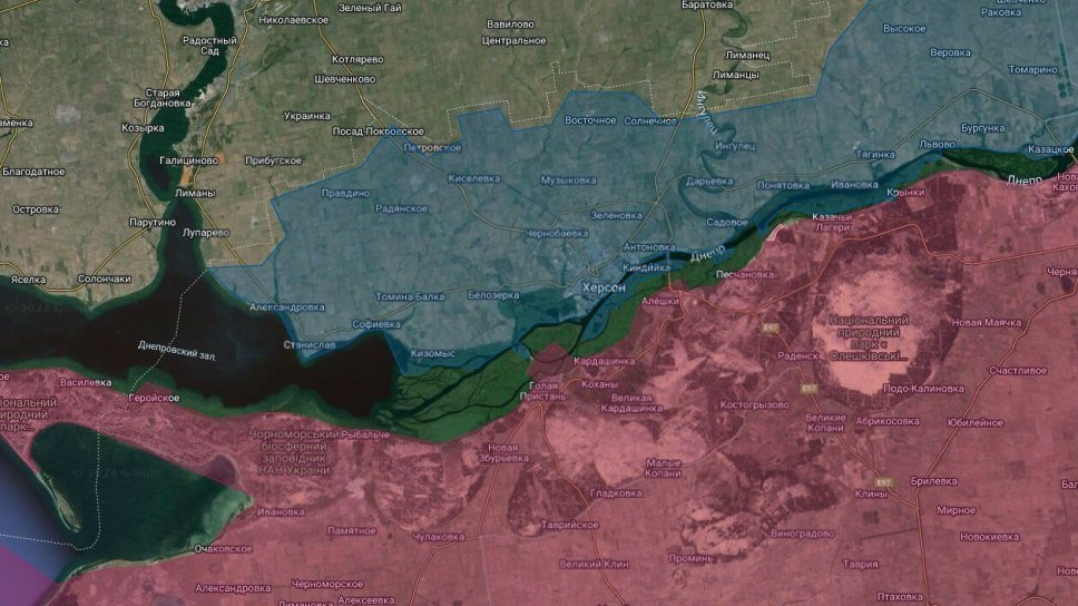 Подразделения ВС РФ закрепились по обе стороны расширения реки Бычок на территории Новоалександровки. О присутствии или отсутствии противника в населённом пункте информации нет.