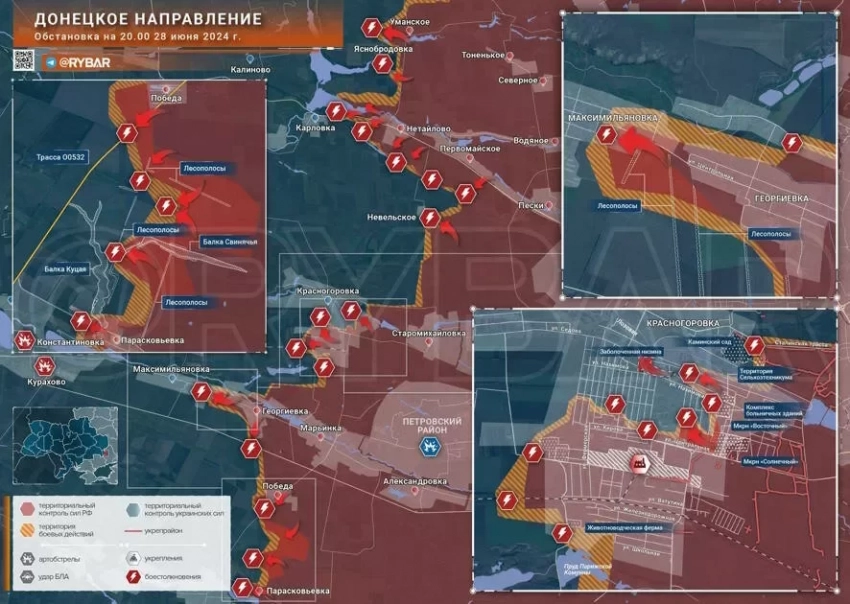 После некоторого затишья на Донецком направлении российским войскам удалось провести серию успешных атак. Продвижения зафиксированы со стороны Георгиевки и Победы, где долгое время не было какой-либо информации о линии фронта, а также в Парасковьевке и Красногоровке.