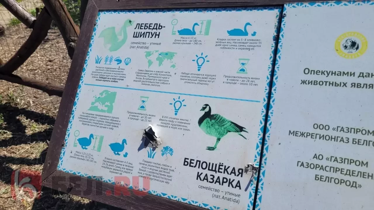 В марте Белгородская область снова подверглась обстрелу. В частности, пострадал зоопарк. Осколками кассетных боеприпасов повредило экзотариум и вольер для содержания кенгуру. Часть осколков упала на берег пруда, где находился вольер с лебедями. Одна из птиц получила серьёзные ранения.
