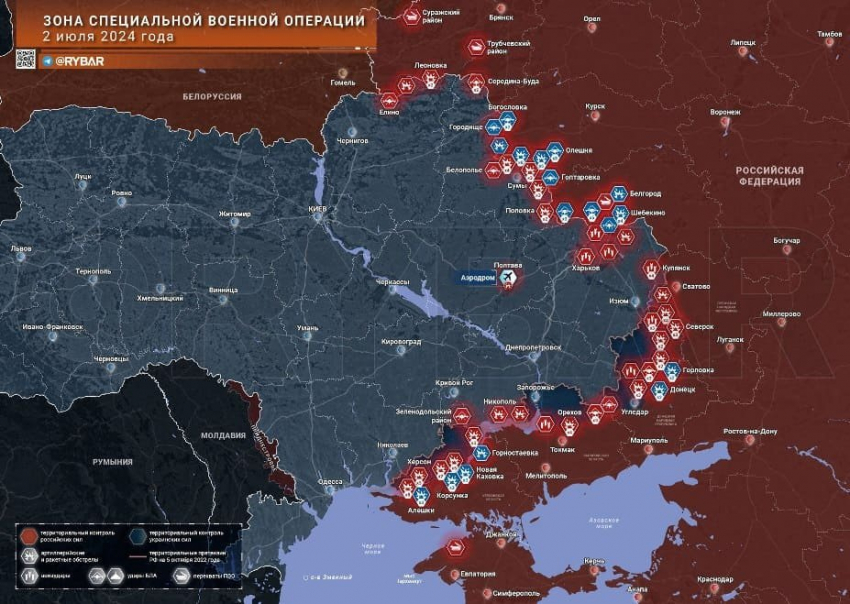 Новая карта боевых действий на Украине в зоне СВО по состоянию на 03.07.2024