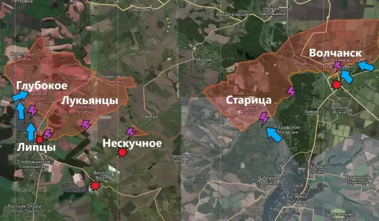 Утром 9 июля Telegram-канал «Северный ветер» сообщил, что на Волчанском направлении продолжаются ожесточенные бои в городе Волчанск. Общее продвижение российских войск на Волчанском направлении составило до 100 метров. Авторы канала подчеркнули, что в районе Волчанска ВСУ снизили интенсивность переброски подкрепления и сосредоточили усилия на попытках наведения насыпных переправ.