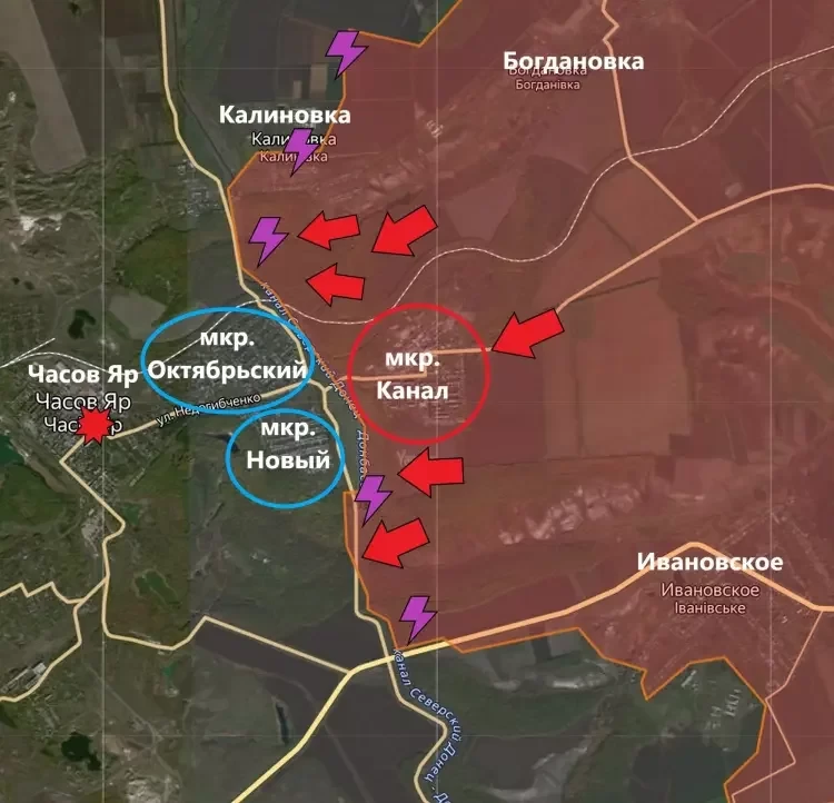 На Константиновском направлении пока без серьёзных изменений и продвижений. Армия России пытается выдавить все вражеские силы на запад от канала Северский Донец - Донбасс перед началом штурма микрорайонов Новый и Октябрьский. Наиболее всего враг упирается в лесном массиве между Калиновкой и микрорайоном Канал, пишет PulsePen.