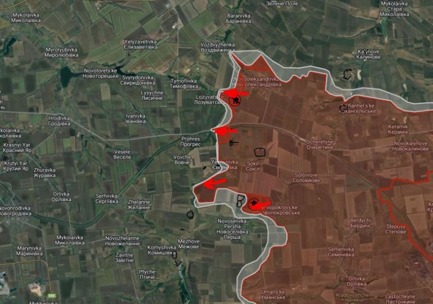 Восточнее Лозоватского российские войска продвинулись вдоль и севернее балки на участке шириной до 1 км на глубину до 1 км.