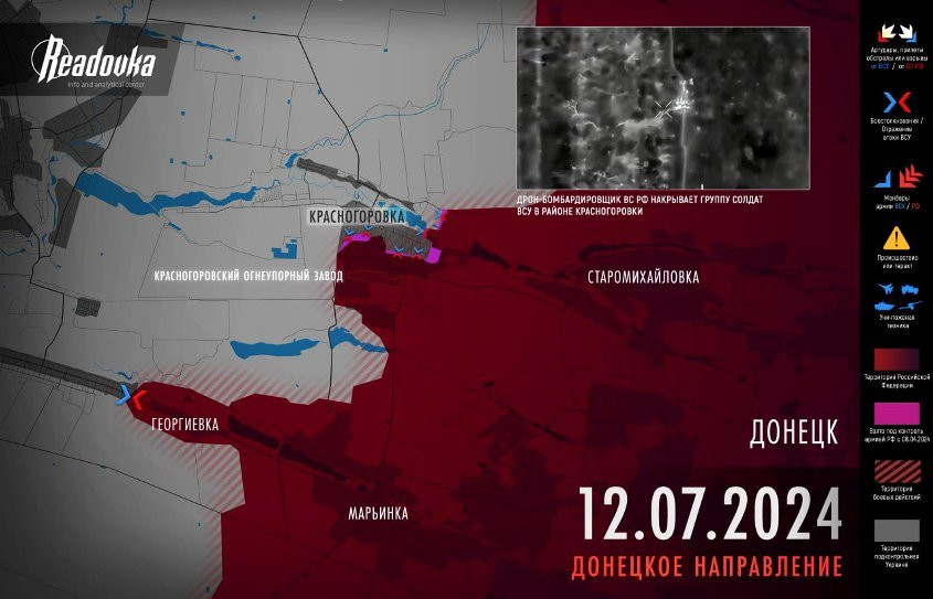 В городе русская армия наступает сразу с двух направлений: в западной части наши бойцы прошли по улицам Академика Королева и Чехова без малого 600 м. На востоке Красногоровки ВС РФ продолжили идти вдоль улиц Белинского, Островского и Нахимова. Иными словами, цель наших войск осталась неизменной - сходящими ударами замкнуть окружение украинского гарнизона.