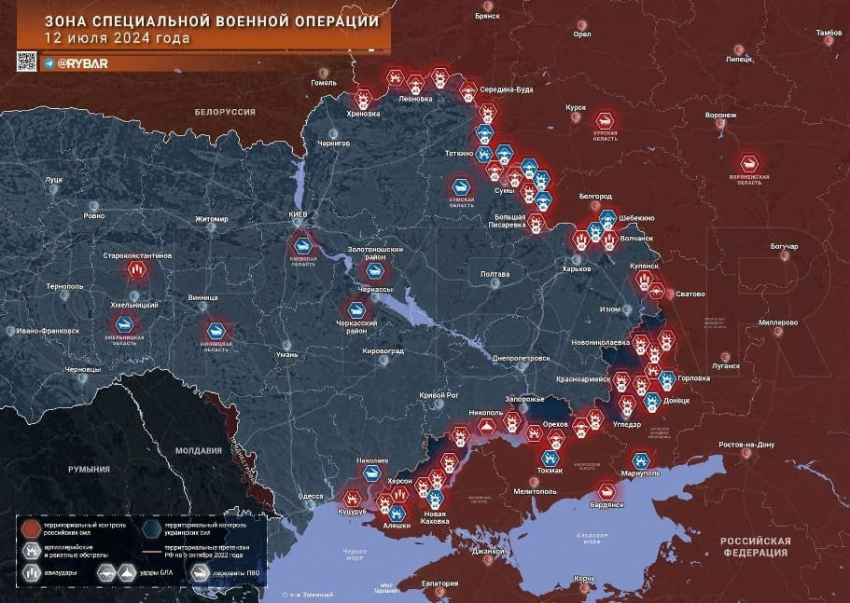 Карта боевых действий на Украине в зоне СВО по состоянию на 13.07.2024