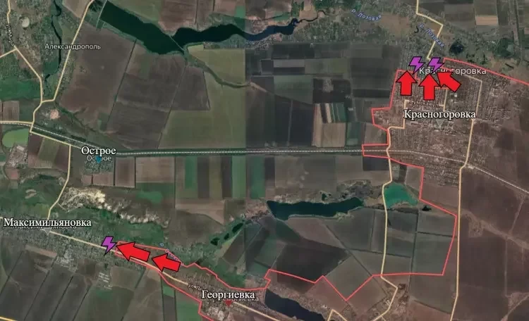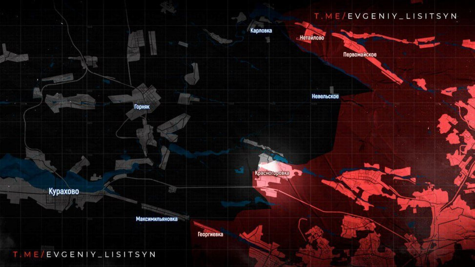 На Кураховском направлении штурмовые подразделения ВС РФ продолжают выдавливать ВСУ из центральной части Красногоровки. Город имеет ещё существенный “отросток” на северо-западе, представляющий собой частный сектор.