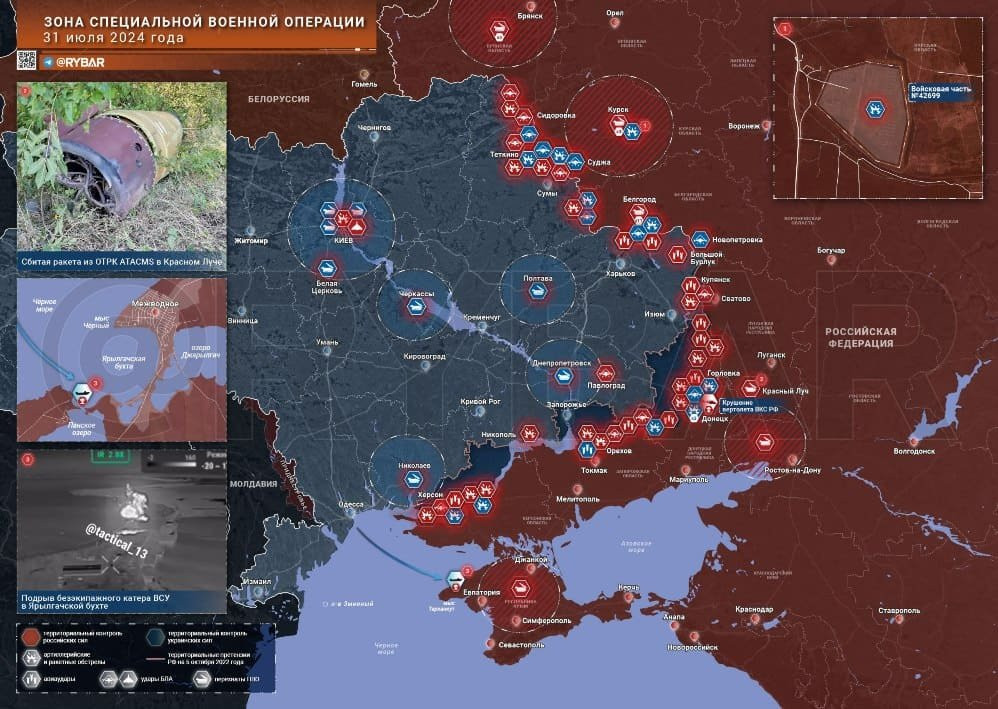 Новая карта боевых действий в зоне СВО на Украине сегодня, 1 августа 2024 года
