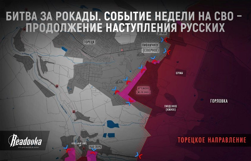 От Часова Яра и до Угледарского направления поступают регулярные сообщения о пока что локальных, но весьма перспективных успехах. Ну а под Торецком у войск киевского режима намечается полноценный кризис, сообщает Telegram-канал Readovka.
