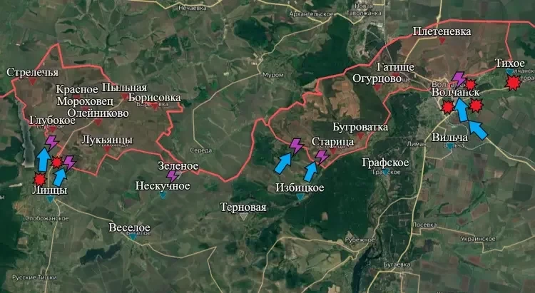 На Купянском направлении наши бойцы продолжают стараться отбить у ВСУ Синьковку, а также продвигаются восточнее и южнее села, закрепились в лесопосадках. Идут встречные бои неподалёку от Петропавловки, а также в районе Ивановки и Кисловки.