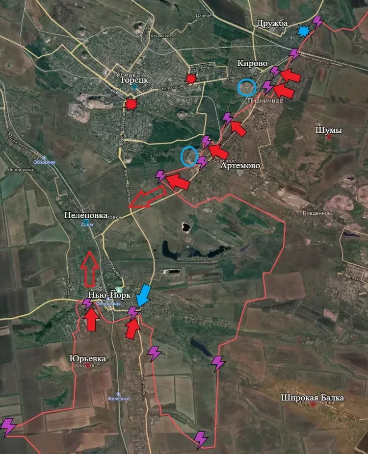 В Нью-Йорке без каких-либо серьёзных изменений - ЛБС на данном участке осталась на прежних позициях. Идут ожесточённые бои в центре населённого пункта. До фенольного завода наши бойцы пока что не добрались - боестолкновения идут на подступах к нему.