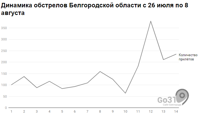 За две недели в Белгородской области было минимум 2 084 прилёта: график